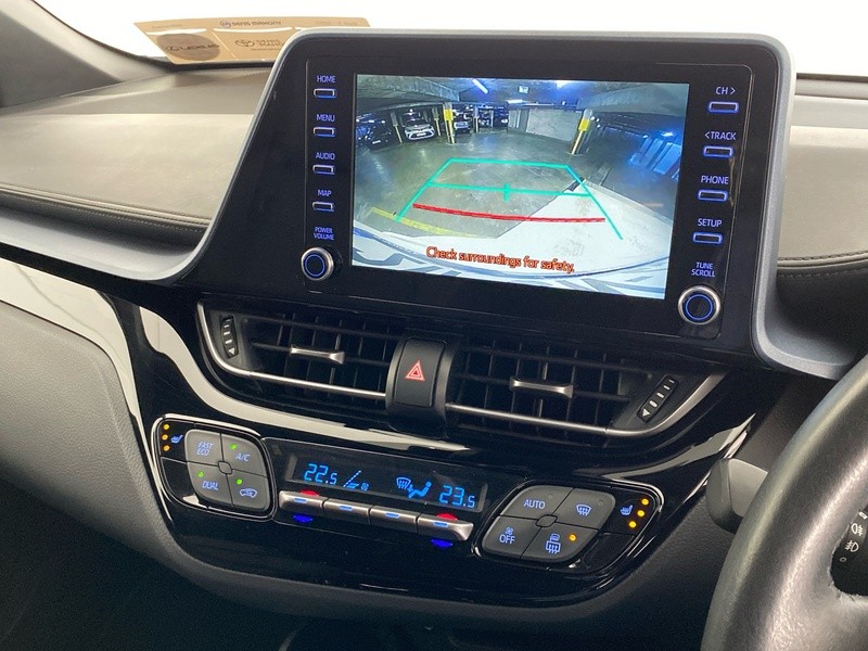 - In Stock Now | (01) 864 7500 | info@denismahony.ie | Included on this Toyota CHR are features such as pearl white exterior, black cloth interior, 18” alloy wheels, electric windows, reversing camera, dual climate control, air conditioning, push button start, cruise control, Bluetooth, leather multi-function steering wheel, digital touch screen, heated front seats, and much more.