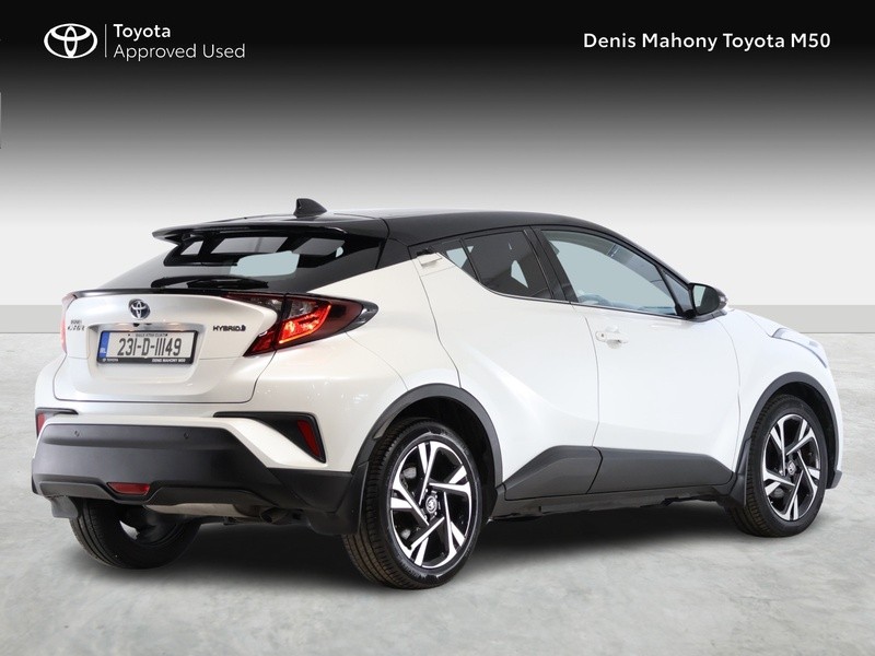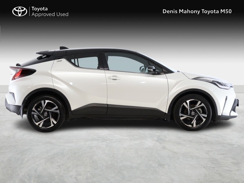 - In Stock Now | (01) 864 7500 | info@denismahony.ie | Included on this Toyota CHR are features such as pearl ice white bi-tone exterior, black cloth/leather interior, 18” alloy wheels, electric windows, reversing camera, dual climate control, air conditioning, push button start, cruise control, Bluetooth® hands-free system, leather multi-function steering wheel, digital touch screen, heated front seats, and much more.