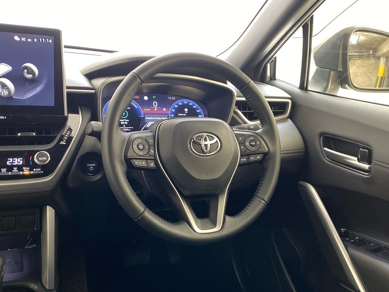 - In Stock Now | (01) 864 7500 | info@denismahony.ie | Included on this Toyota Corolla Cross are features such as metallic paint - manhattan grey exterior, black fabric interior, 18” alloy wheels, electric windows, reversing camera, dual climate control, air conditioning, push button start, cruise control, Bluetooth® hands-free system, wireless IQ phone charger, leather multi-function steering wheel, digital touch screen, and much more.
