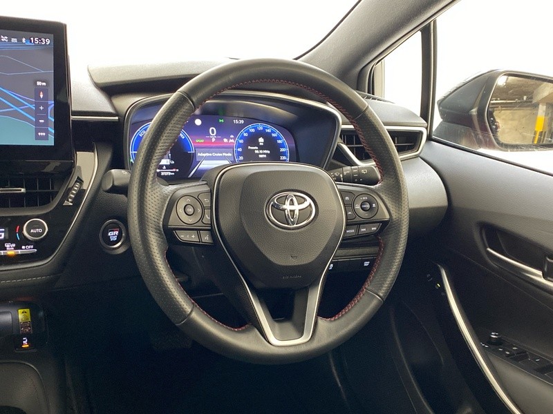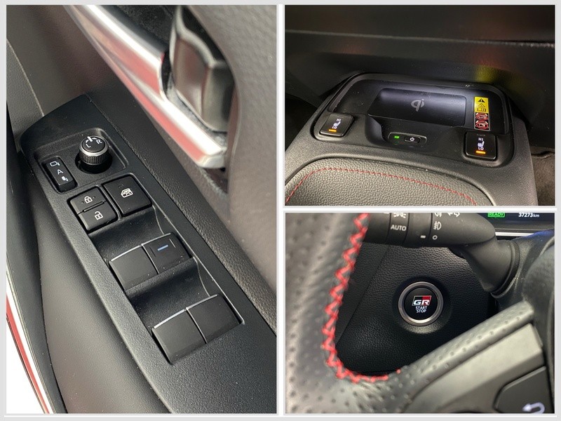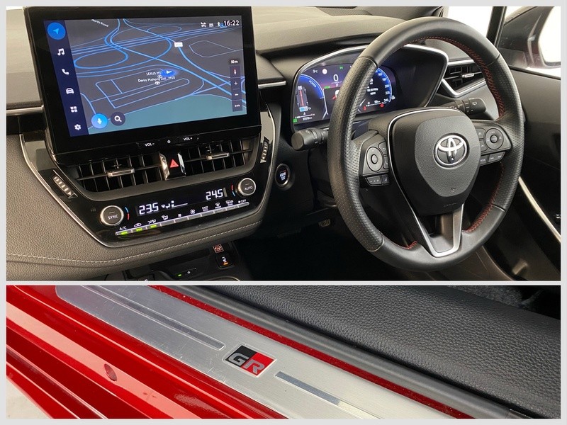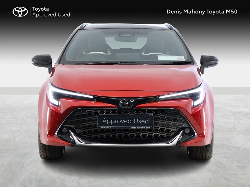 - In Stock Now | (01) 864 7500 | info@denismahony.ie | Included on this Toyota Corolla Touring Sports GR Sport are features such as pearl red bi-tone exterior, black leather/fabric with red stitching interior, GR Sport styling package,18” alloy wheels, electric windows, reversing camera, dual climate control, air conditioning, push button start, cruise control, Bluetooth® hands-free system, wireless phone charging, leather multi-function steering wheel, digital touch screen, heated front seats, tow bar, and much more.