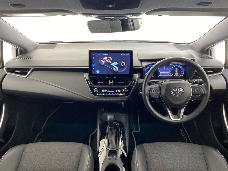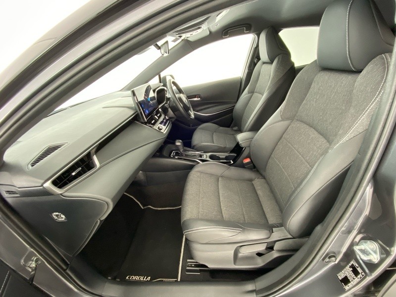 - In Stock Now | (01) 864 7500 | info@denismahony.ie | Included on this Toyota Corolla Hatchback are features such as ash grey bi-tone exterior, black/dark grey cloth/leather interior, 17” alloy wheels, electric windows, reversing camera, dual climate control, air conditioning, push button start, cruise control, Bluetooth, wireless IQ phone charger, leather multi-function steering wheel, digital touch screen, heated front seats, and much more.